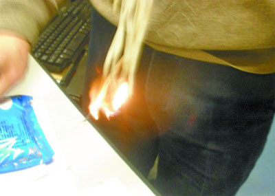 记者分别购买了5种面条,在点燃试验后发现湿面条真的可以燃烧,还烧出了火苗,如不人为熄灭,长长的面条可全部烧完。面条烧后发出皮毛烧焦的气味,很刺鼻,剩下发黑的灰烬用手捏感觉非常硬。