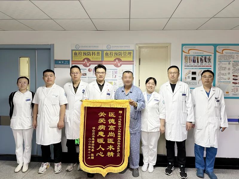 出院之际,大叔夫妇赠予医院一面精心准备的锦旗,它不仅是对介入血管外科团队精湛医术的认可,更是对这段跨越千山万水、温暖人心的医患故事的永久铭记。青岛的“风”,不仅吹散了呼伦贝尔草原上的阴霾,更在病患心中种下了希望的种子。