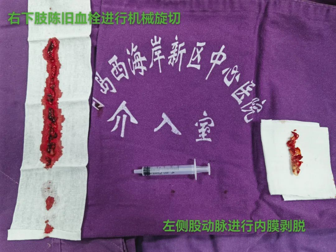 手术团队术中细致操作,精确定位,步步为营,将导丝导管通过闭塞段,配合简单的球囊扩张及斑块旋切装置实现初步复通,再通过溶栓导管将溶栓药物直接作用于病变部位,从而消除残留血栓,减轻痉挛、改善血流。