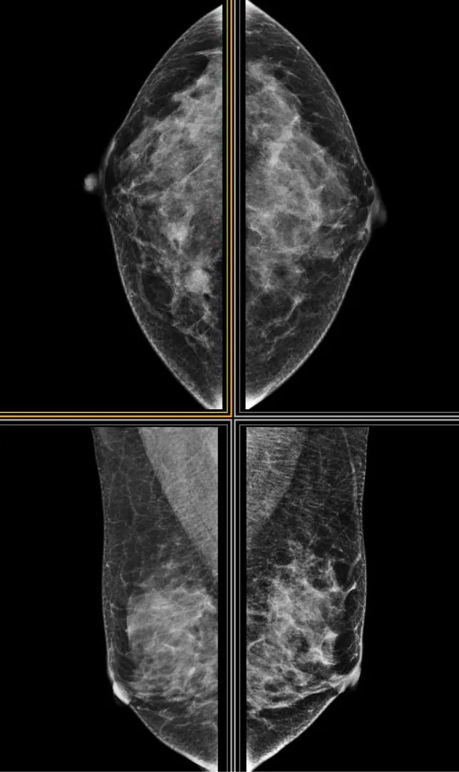 优点:简单、方便、费用低、无创、诊断标准完备;尤其对早期乳腺癌微细钙化成像清晰、特征突出,是公认的检测早期乳腺癌的有效手段;方便观察肿块、钙化、不对称、结构扭曲等。