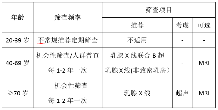 乳腺癌的筛查是一个长期的、定期的、习惯性的工作,建议将40岁作为乳腺癌筛查的起始年龄,乳腺超声应作为中国女性乳腺癌的首选筛查手段。