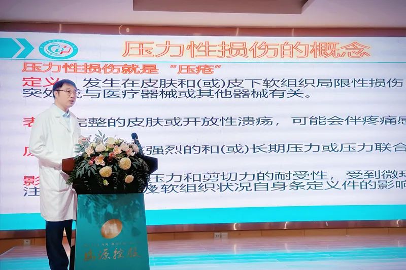 张瑞鹏主任对糖尿病患者预防及警惕糖尿病足及下肢动脉闭塞溃疡发生进行宣讲;赵丽护士长针对压疮的预防及压疮发生后护理措施及注意事项进行培训;徐超医生结合大量的病例对创面的分期、各期创面管理及创面的治疗及预后进行讲解。