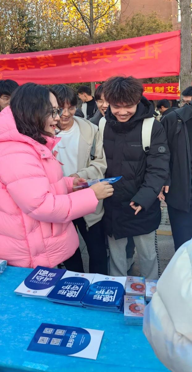 11月29日,区中心医院的专业团队走进青岛理工大学(黄岛校区),发放宣传材料300余份,张贴主题挂图6份,现场解答咨询超百人次。活动不仅普及了艾滋病及其他性病的防治知识,更强调了自我保护的重要性,尤其是在“女性隐形守护”板块,通过细致入微的指导,显著提升了女生的自我保护意识。
