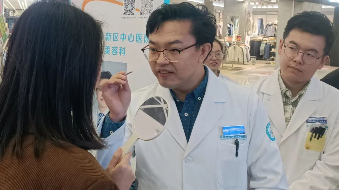 视光中心:视光中心同样忙碌非凡,尹增伟副主任带领的团队为市民提供了免费的综合验光、裂隙灯检查及眼镜清洗服务。他们耐心地为市民讲解近视防控知识,建议定期进行视力检查,确保视力健康。