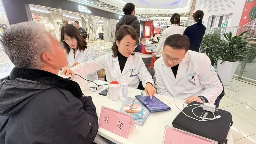 超声医学科李明莉主任与介入血管外科孙永强副主任医师携手,利用便携式超声设备,为市民们进行了免费的血管和甲状腺筛查。一位中年男士因担心自己患有甲状腺结节而前来咨询,李明莉主任亲自为他进行了超声检查,并给出了专业的建议,让他心中的疑虑得以消除。
