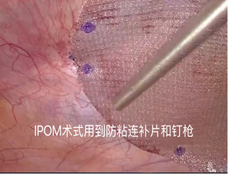 3.腹腔镜腹腔内放置补片(IPOM),补片和钉枪有点贵: