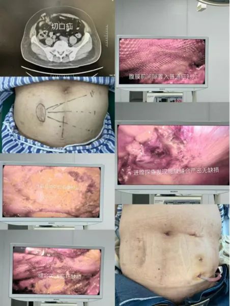 西海岸新区中心医院胃结直肠外科疝与腹壁外科诊疗组多年来积累了丰富的治疗切口疝的经验,随着腹腔镜技术的发展,近年来传统的肌前补片修补术(onlay)、肌后补片修补术(sublay)已很少应用,腹腔镜下腹内补片修补术(IPOM)、腹腔镜下经腹腔腹膜前补片修补术(TAS)、腹腔镜下全腹膜外sublay(TES)、腹腔镜内脏囊剥离术(TVS)等术式更多用于临床。