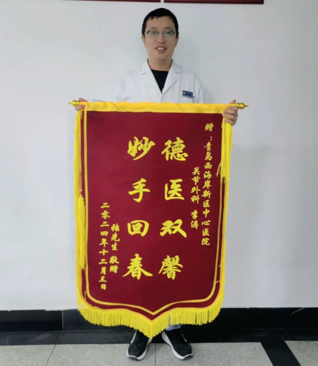 “德医双馨 妙手回春”,一面鲜红的锦旗,代表了张先生及爱人李女士千言万语的感激。他们说这次住院经历,颠覆了自己一直以来对医生刻板严肃、不苟言笑的印象,李医生的耐心细致、宽厚温和让张先生觉得像亲人一样,那份温暖就像冬日里的一抹暖阳,让伤痛带来的阴霾一扫而光,让心情变得明亮舒畅!