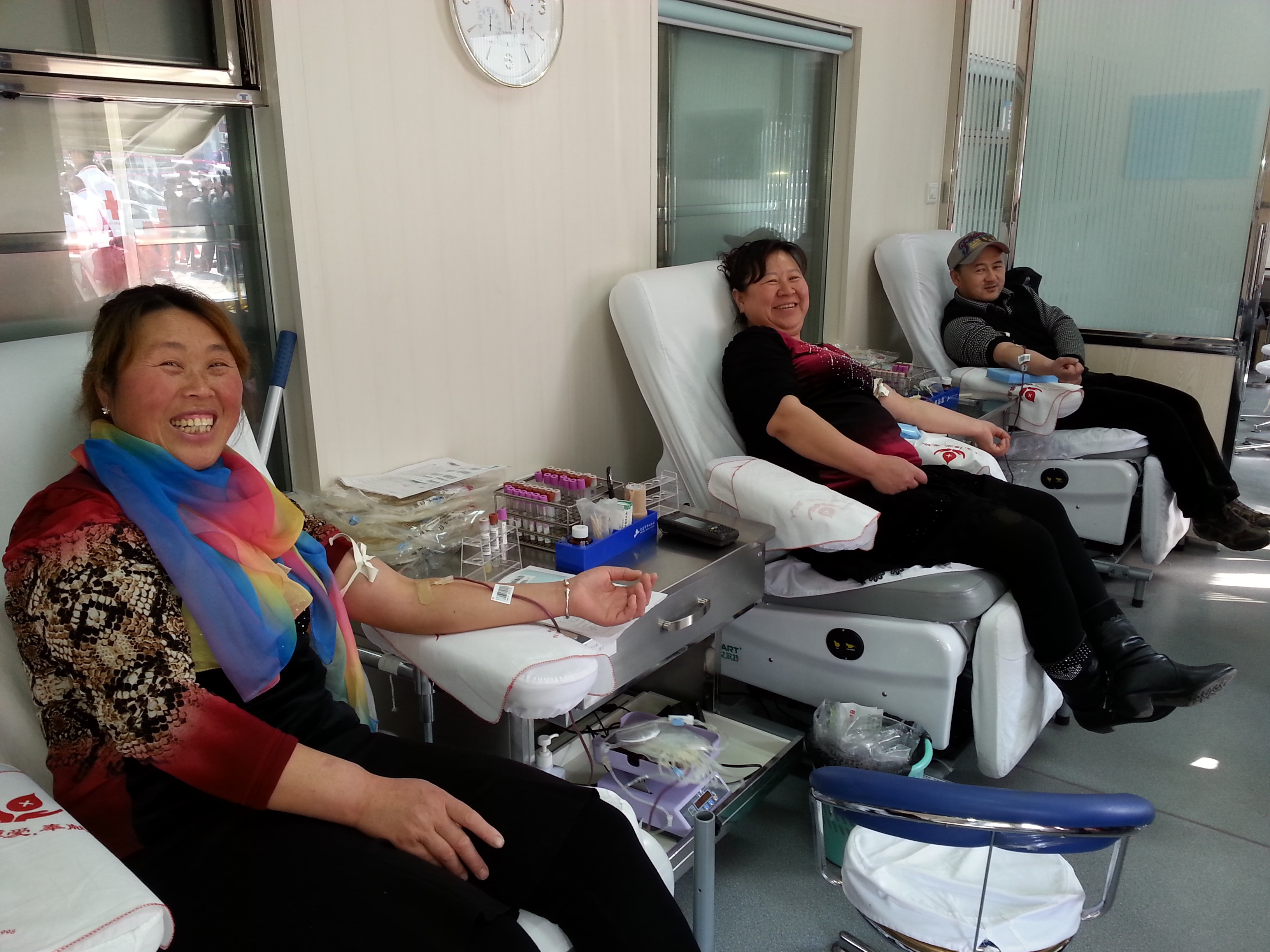 这天,已是潘振华第13次献全血了,累计献全血量达4900毫升,丈夫徐增生第11次献血,献血量达4000毫升。“我不光自己献血,还动员家里人都献血,瞧,今天我妯娌徐守霞就一起来献血了,我小叔子年前刚献的,还不到期。”潘振华豪爽的向献血屋工作人员介绍道,“俺妯娌徐守霞自2008年开始献血,也已经献了2700毫升了。”潘振华骄傲的称赞道。“献血无损身体健康,同时还能救助别人,何乐而不为?只要身体允许,我们将一直坚持献血。”朴实的徐增生附和道。