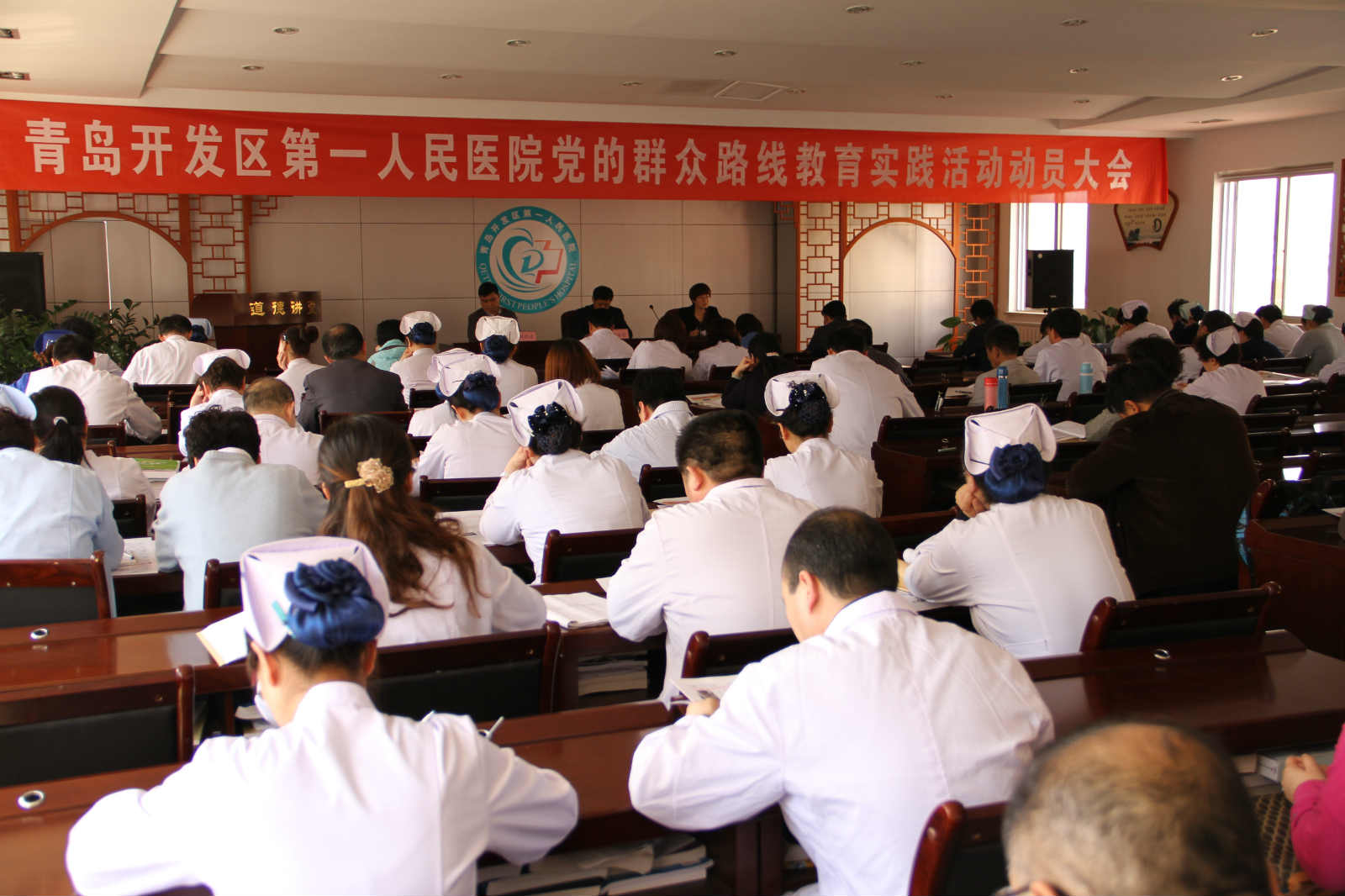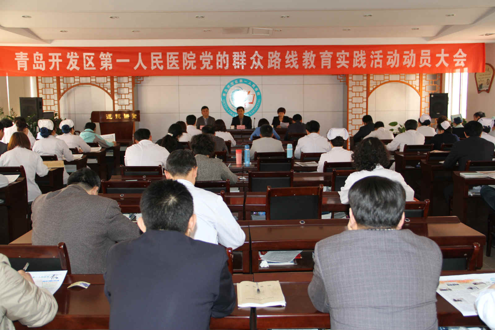 为确保党的群众路线教育实践活动顺利开展并取得实效,按照中央、省、市、区及区卫生和计划生育局党委的统一部署,青岛市开发区第一人民医院“开展党的群众路线教育实践活动”动员大会于3月31日下午在行政四楼会议室召开,会议由董晓静书记主持,分管医院区卫生和计划生育局第一督导组组长韩福金局长携督导组成员参加会议并讲话,医院党员及中层干部90余人参加会议。