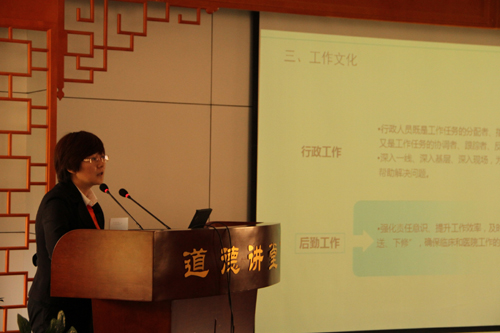 培训中,杨德才博士结合医院实际,从医院文化建设的目的、医院文化理念建设思路和开医文化理念阐释三个方面讲解了医院文化的建设。