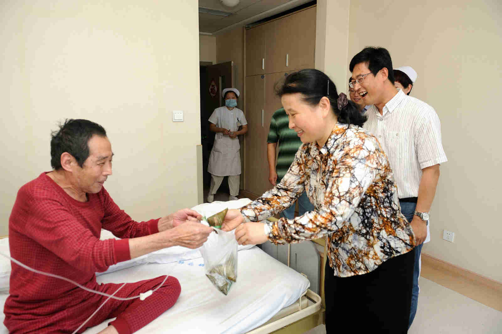 集团党委秦璞书记带领青年文明号的医护人员为住院患者送粽子