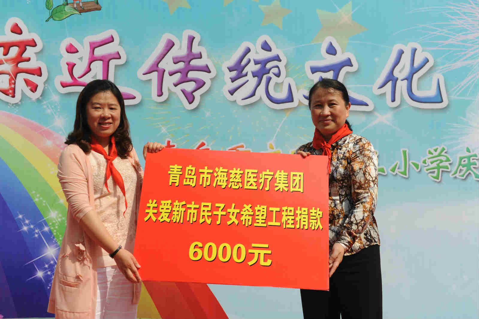 六.一儿童节之际,近日,青岛市海慈医疗集团的青年文明号集体再次来到重庆路第三小学,进行关爱新市民子女的活动,集团党委书记秦璞同志代表医护人员向新市民子女捐款6000元整。