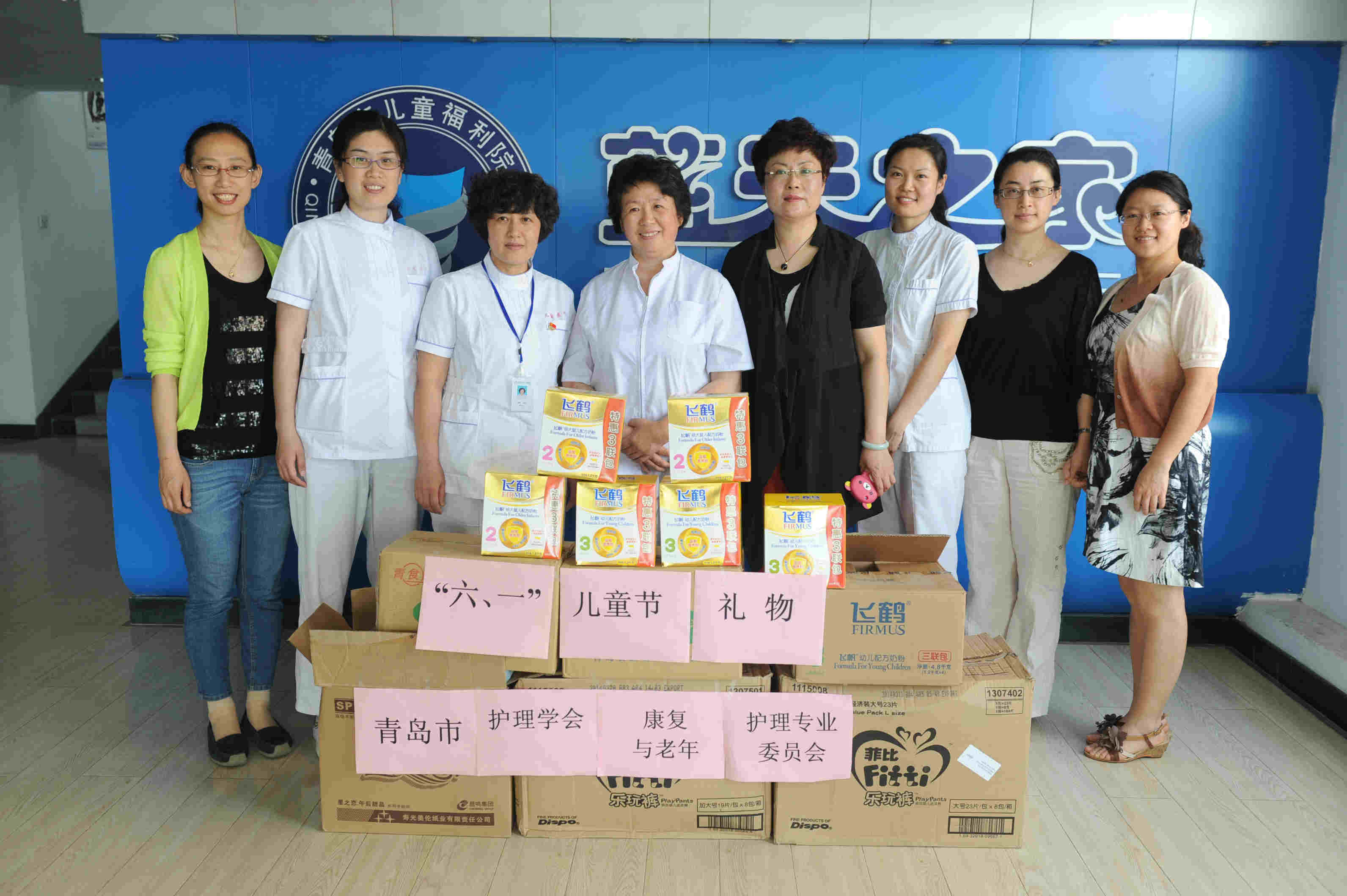 6.1儿童节来临,海慈医疗集团的医护人员没有忘记福利院的儿童,集团护理部王莉主任和中医儿科葛湄菲主任带领医护人员为孩子们送去了奶粉、饼干等节日礼物,儿一科的义工妈妈为孩子们买了新衣服和生日蛋糕,与往常一样给脑瘫的患儿进行了三字经流派推拿康复治疗,和孩子们一起度过了一个快乐的六一儿童节。