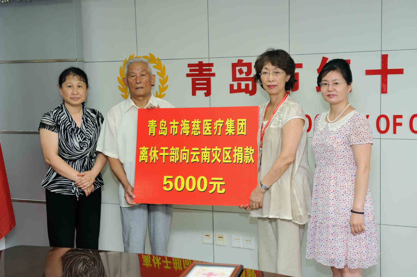 海慈医疗集团离休老干部们在得知云南省鲁甸地区发生6.5级地震灾情后,灾情时刻牵动着离休老干部们的心,他们有的亲自电话联系单位、有的委托子女联系单位要为灾区奉献爱心。8月13日上午,海慈医疗集团党委书记秦璞亲自联系并带领离休党支部书记王大义,冒着大雨一起来到了市红会,将集团29名年龄均已80多岁的离休老干部们捐助的5000元人民币捐赠给地震灾区。王大义书记向市红十字会负责人表示:“一方有难,八方支援”,我们年岁已大,虽然不能到抗灾第一线去抢险救灾,但我们也要为灾区人民尽一点自己的微薄之力,帮助地震灾区人民渡过难关,重建家园。我集团离休老干部从2008年的汶川大地震、玉树大地震以及资助春雷女童等爱心活动中,他们都个个慷慨解囊、踊跃捐款,一幕幕感人场面不胜枚举,体现了海慈医疗集团老干部们的高尚品质。
