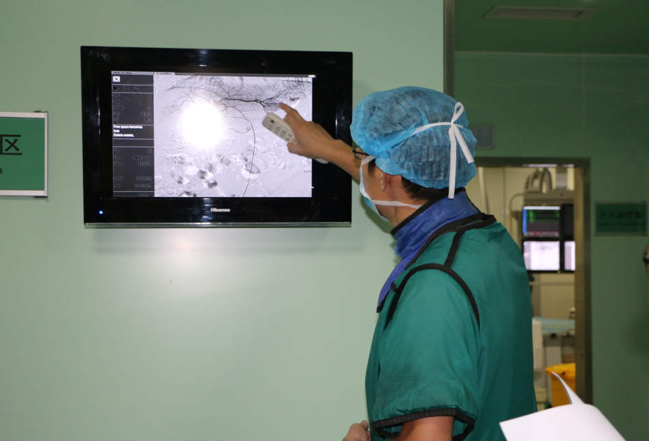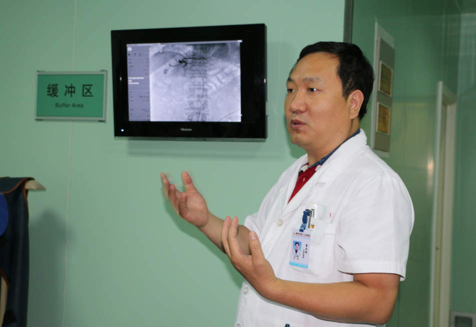 介入治疗科的尹主任运用科室缓冲区的多媒体向记者形象的展示了八医在周围血管和心脑血管疾病介入救治方面的成果。据悉,科室缓冲区的多媒体就是为了让患者家属详细直观的了解患者介入手术过程而设立的,这也是八医在优化细致服务上的一项举措。
