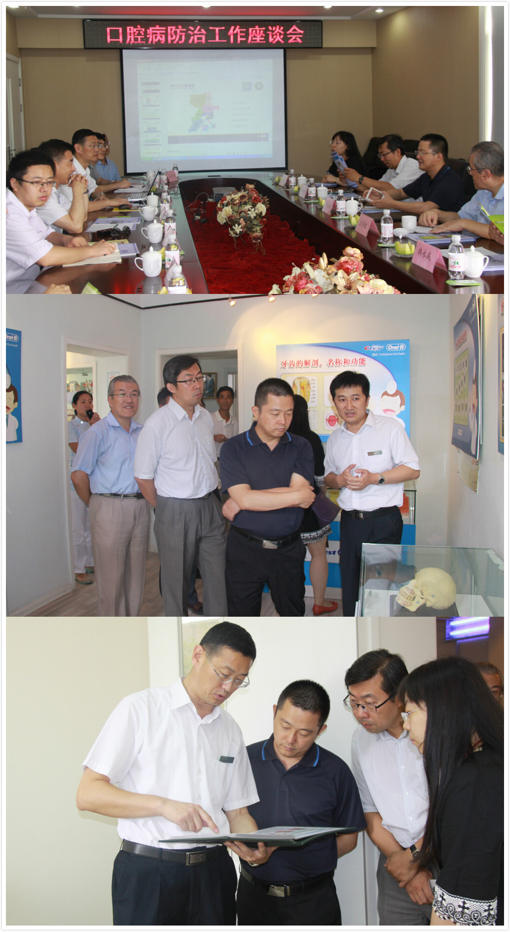 2015年7月25日,国家卫生计生委疾控局慢病处李光琳副处长、杨娜主任,中国疾病控制中心慢病中心李志新书记,中国牙病基金会秘书长、北京大学口腔医院王伟健教授,北京口腔医院韩永成教授等一行五人在省卫计委疾控处褚锁强主任陪同下,来到青岛市口腔医院进行口腔病防治工作调研和座谈。