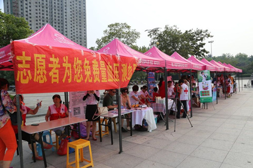 纳凉晚会现场气氛热烈,悦耳的古筝齐鸣,华美的舞蹈异彩纷呈,跆拳道、架子鼓表演气势十足,有奖问答、现场互动,广大市民在愉悦温馨的氛围中走近无偿献血,感受爱心奉献。血站工作人员和白衣天使中队的志愿者们现场引导组织市民免费测血型、量血压,共计112人次。志愿者们走上街头发放宣传折页,讲解无偿献血知识,共计发放1820余份宣传材料。