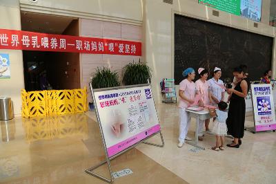 2015年8月1-7日是第24个世界母乳喂养周,今年的主题是:职场妈妈,“喂”爱坚持。为更好地开展2015年世界母乳喂养周宣传活动,母乳喂养周期间,平度人民医院开展形式多样宣传活动,营造爱婴爱母社会氛围。通过发放宣传册、现场咨询、分娩后母乳喂养知识与哺乳技巧宣教和热线电话咨询等多种途径向孕产妇传播母乳喂养知识和技能,及时解决产妇在母乳喂养过程中遇到的问题,积极推行母乳喂养,努力提高母乳喂养率,保护妇女儿童健康权益。