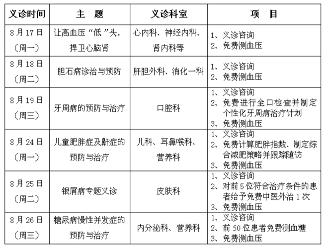 义诊时间及主题,安排如下: