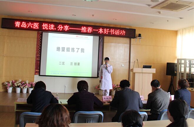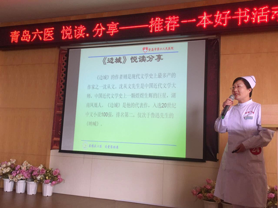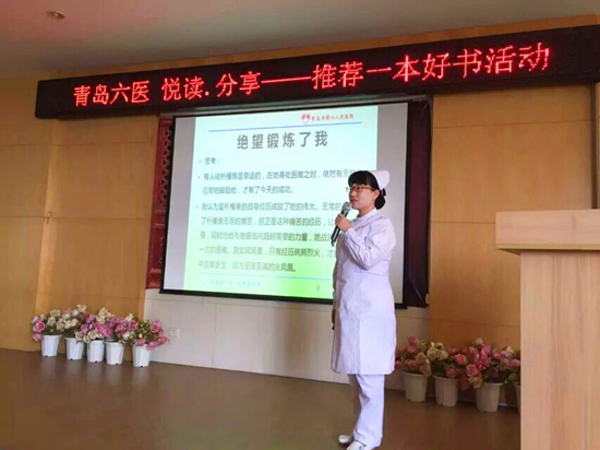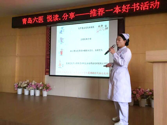 一本书,传承千年文化,一篇文,照亮人生之路。为庆祝第105个国际护士节的到来,展示白衣天使风采,丰富护士们的精神文化生活,5月6日,由护理部主办的青岛六医庆祝护士节系列活动之悦读·分享---推荐一本好书活动在六楼学术厅拉开帷幕。