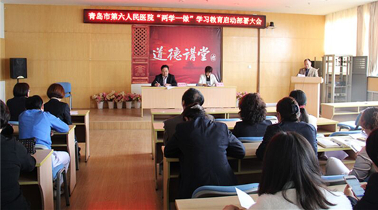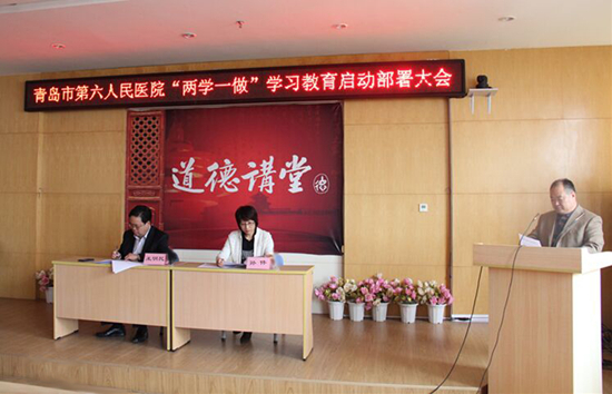 5月10日上午,青岛市第六人民医院 “两学一做”学习教育启动部署大会在六楼学术厅召开,医院全体党员参加了会议,标志着医院“两学一做”学习教育正式启动。会议由院党委委员、工会主席孙伟同志主持并进行了专题培训,医疗第二党支部书记朱兆伟同志代表各党支部就如何抓好“两学一做”学习教育、提高思想认识等进行了表态发言,院党委书记、院长王明民同志进行了动员部署。