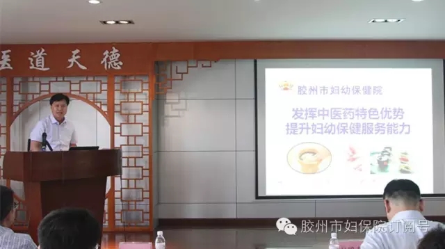 会议现场,胶州市妇幼保健院宋同勋院长做了“发挥中医药特色优势 提升妇幼保健服务能力”为题的经验交流。中医中药是我国医药卫生体系的重要组成部分,近年来,医院为更好的发挥中医药在妇幼保健中的诊疗优势,全力打造中西医结合妇科、乳腺科、儿科、不孕不育科等特色科室及中药房,从中医药这一博大精深的医学宝库中汲取营养,充分发挥中医药“简便验廉”的优势,不断提高医疗保健技术水平、服务水平和管理水平。2016年根据妇幼卫生工作方针和实施“全面二孩”政策的新形势、新要求,医院在制定实施的“11235”发展规划中将中医药工作全部参与各个环节的项目建设,实现妇幼保健的中西医深度融合,显示出较好地发展前景。