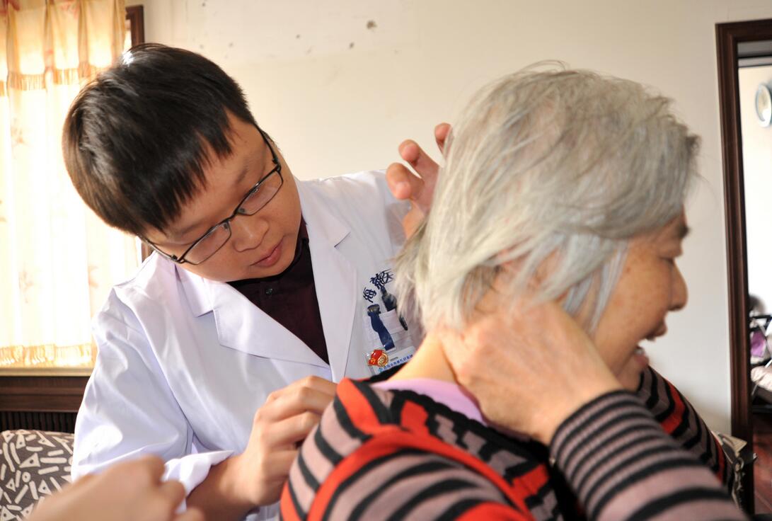 78岁的刘奶奶老伴已经去世,儿女也不在身边,去年进行了颈椎手术,还患有帕金森综合症。来自青岛市青年文明号海慈医院脊柱外科的医护人员一年来,每逢节假日都来看望老人,定期为老人查体。梁超医师为老人进行了详细的检查,指导老人术后康复、日常用药和起居注意事项,特别叮嘱老人每天进行一到两次的烤电,利于颈部的康复。查体后,大家围坐在一起,陪老人聊天,刘晓明护士为老人剥橘子,送到老人嘴边,刘奶奶直说“真甜”。