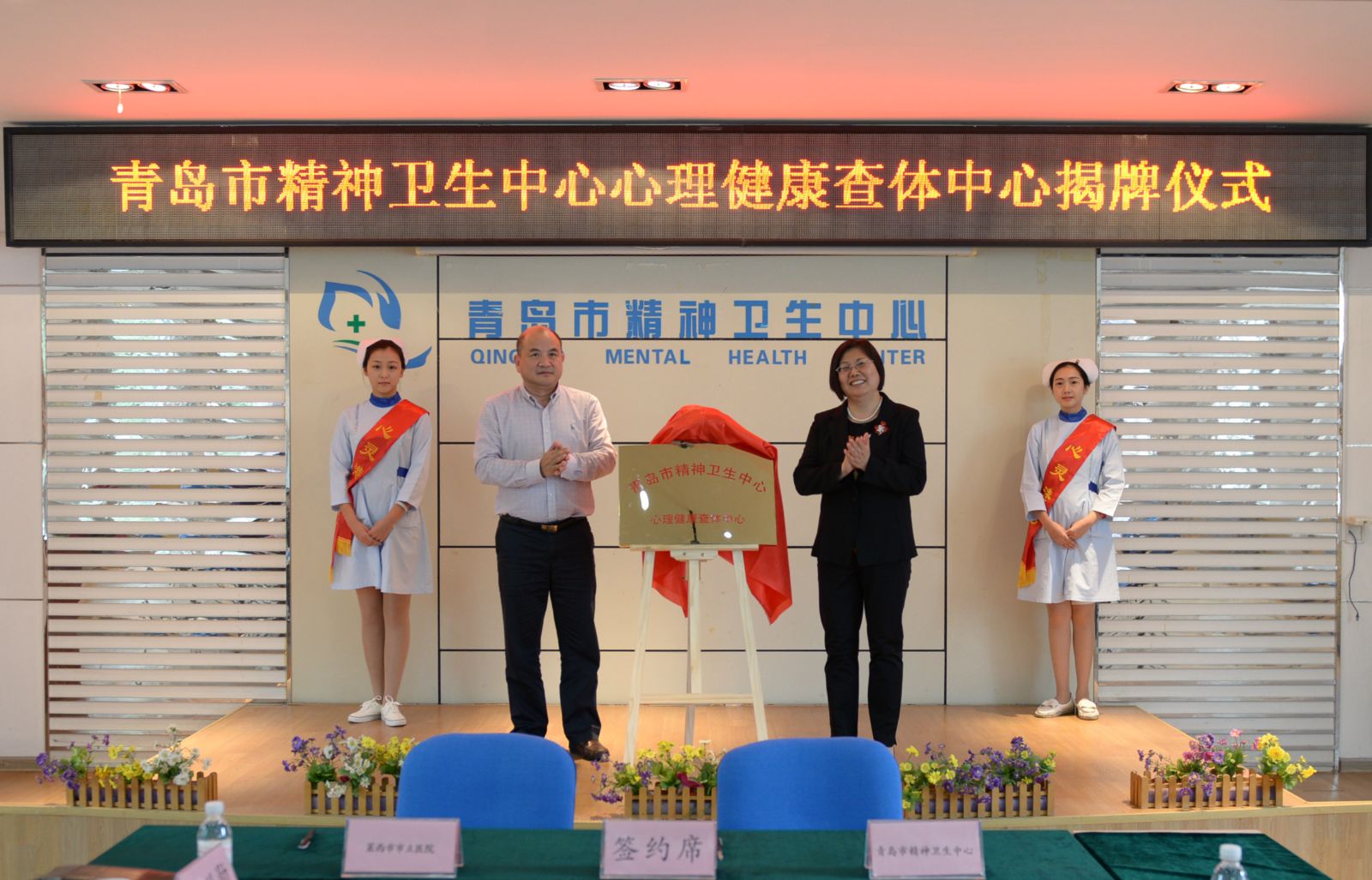 签约仪式后,举行了心理健康查体中心揭牌仪式,标志着青岛市首家心理健康查体中心正式成立。