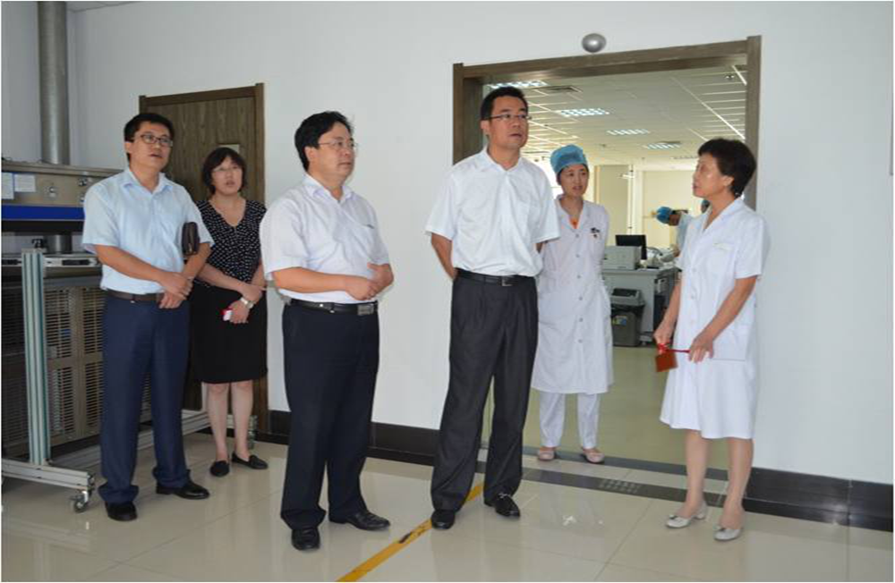 图为国家卫计委领导到血站指导工作,赵林(右一)陪同参观供血科