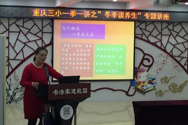 在讲座中,李莉莎副主任医师讲到,中医学强调“整体观念”,认为人的一切生命活动都与大自然息息相关,必须与其保持和谐一致,才能保持健康。其中冬季养生原则:“敛阳护阴,以固收藏之本”。针对老师们关心的冬季起居、饮食调理、如何进补等方面进行了详尽说明,并现场解答了老师们的提问。