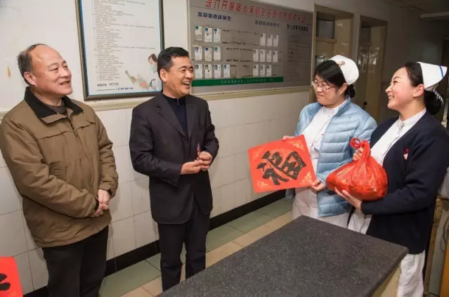 1月27日除夕下午,青岛市海慈医疗集团党政领导班子成员带领各职能科室负责人,走访慰问了在春节期间依然坚守在工作岗位上的医护人员和住院患者,送去了新春的祝福。