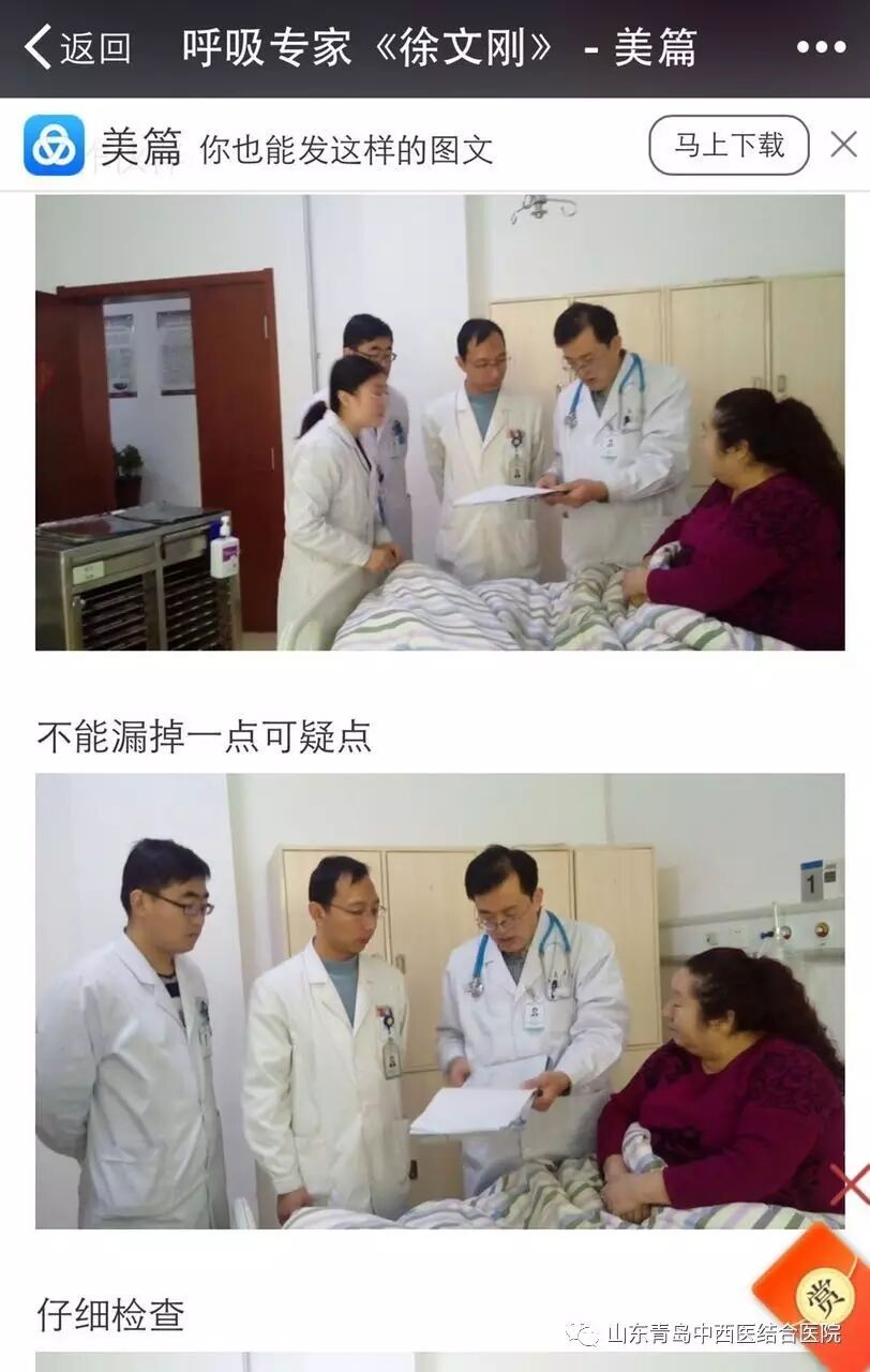 家住市北区的王阿姨患有支气管哮喘病多年,来来回回不知道跑了多少家医院,效果一直不是很理想。有一次她听说山东青岛中西医结合医院呼吸科主任徐文刚治疗这种疾病有一套,就慕名前来。在门诊上跟着徐主任治疗一段时间之后效果不错。年前,忽冷忽热的天气让患有支气管哮喘的王阿姨又受不了了,为了能安稳过个好年,王阿姨就办理了住院手续,在医院呼吸科接受治疗。科主任徐文刚为王阿姨制定了切实可行的治疗方案,在该科医护人员的精心治疗和护理下,王阿姨的病情一天天减轻,身体日渐好转,她也亲身感受到了科室医护人员给予患者浓浓地温情和中医特色疗法给她的病情带来的福音,她逢人就夸:“咱山东青岛中西医结合医院医术精,环境佳、中医特色疗法就是高。”为了感谢呼吸科医务人员为病友们的辛勤劳动与付出;为了传播中医药文化、中医国粹;为了表达感谢、歌颂正能量,为此,王阿姨特意以住院期间的就医感受和日常见闻为题材,为医院呼吸科制作了一个电子书,以此来表达对医护人员的感谢。