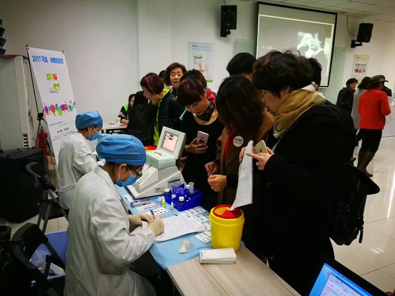 昨天的献血点设在了位于南京路的康宝莱公司,上午9时左右,现场已经有很多志愿者在排队体检。57岁的王灵芝是Rh阴性A型血,因为血型稀有,血站工作人员特地叮嘱她等电话通知再献血。去年10月份刚刚献血的她,这次只好做起了给其他志愿者服务的工作。“我从2000年开始献血,后来遇到严重车祸,身体恢复后又开始重新献血。我年龄在这里,再不献血,都没法献了,我一定要献到不能献为止。”王灵芝说。受她带动,聋哑志愿者刘秀也第一次参与了无偿献血。