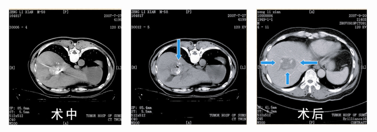 患者:男,58岁,6月确诊为原发性肝癌,进行肝癌微波消融术后病灶基本消失