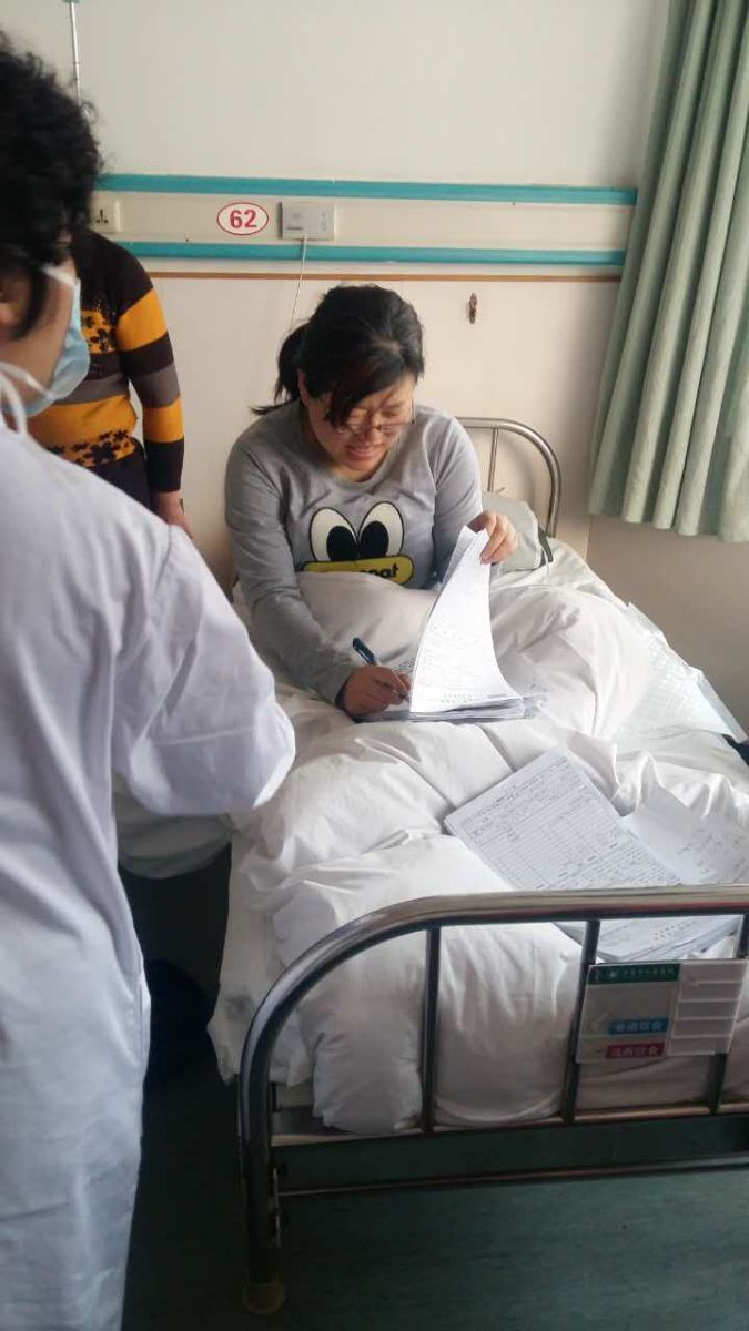 熬过了先兆早产,终于松了一口气,但是徐大夫的血压慢慢高了起来,水肿都到了肚皮,1个周之内血压高到160/100mmHg,尿蛋白从无到3+,典型的妊高症,且病情进展极快,虽然我们都知道其中的风险,但仿佛这一刻所有人都存在自欺欺人的念头,祈祷这不是真的,继续上班。直到今天徐大夫自觉头胀,才迫不得已住院引产,而且是自己完成病例,庆幸的是母婴平安顺利分娩。但是顺产后徐大夫仍心系工作,于是在我们下班后看望她时,将工作一一与我们交班,并在出院前完成手中的相关病例。