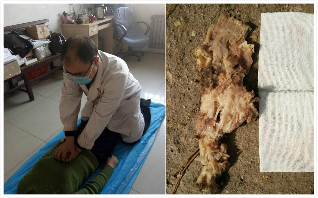 2月14日中午,正值午饭时间,120急救中心响起了急促的电话铃声,“哎呀,赶紧滴,我的女儿吃东西噎住了,喘不动气了,你们快来呀!”电话的那头传来老人焦急的呼救声。胶州市人民医院的急救调度员接到报警后,在第一时间快速派出救护车的同时对其进行了电话指导,可是由于老人极度紧张激动,根本不能配合指导操作。所幸的是救护车很快赶到了现场,市人民医院急诊科的出诊大夫付邦林到达现场后,立即就地对其进行了海姆立克急救法施救,本已窒息昏迷的病人在付邦林的急救下顺利排除了堵塞气道的食物——一块长约10厘米的羊肉!病人得救了!其亲属们悬着的心顿时平复了下来,纷纷感谢我们的急救人员及时有效的救治。