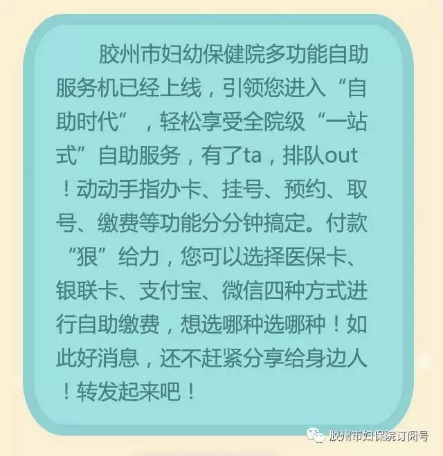 胶州市妇幼保健院:多功能自助服务机上线啦!