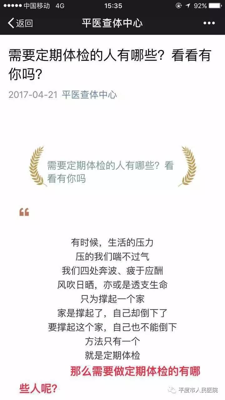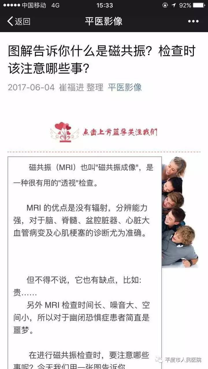 由于这种志愿服务形式取得实实在在的效果,医院先期在7个科室推广此形式的服务。目前,只要大家关注平度市人民医院官方微信平台公众号,点击微信矩阵服务菜单,各科室的微信平台便会推送到大家面前,医务志愿者们为市民提供的健康大餐,在这里得到了精彩的呈现。微信群的力量也不可小觑,通过微信沟通方便快捷的特点,许多患者得到了有效救治。