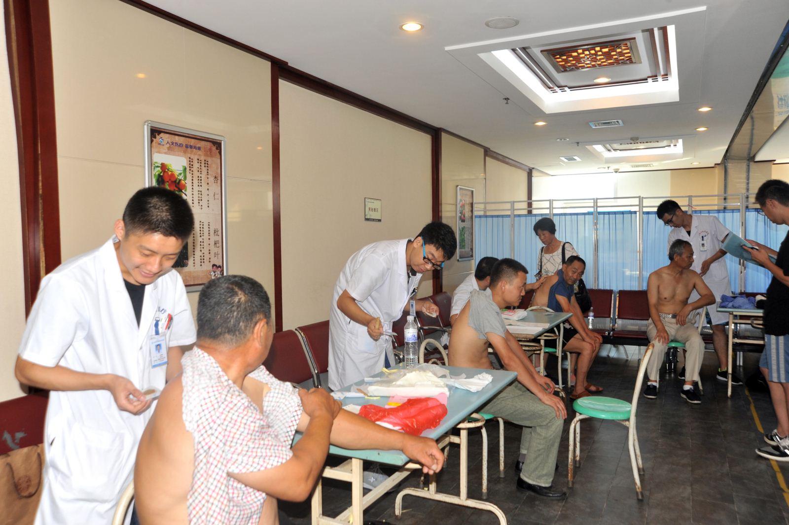 而来自胶南的李女士与74岁的母亲4点钟就起床,坐车6点赶到医院前来第二次贴敷。“老人肺病多年,咳嗽哮喘常发,都说海慈肺病科贴的好,第一贴老人也说感觉不错,所以今天我们早早来了!”李女士说,虽然当地也有“冬病夏治”,但听闻海慈效果最好。肺病科李莉莎副主任医师也说近几年胶南、即墨等周边地市居民前来贴敷的患者明显增加。
