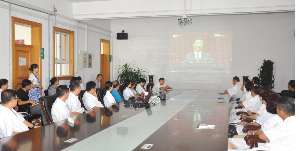 收看的过程中,各党员干部、群众认真学习把握习近平总书记讲话的重大意义、精神实质和深刻内涵,深刻感受到祖国的强大及驻军部队战斗力在军民深度融合发展中稳步提升。在集体观看直播后,院长郭冰及党委书记张红梅发言,对党员及职工提出要求,积极响应习总书记的号召不断完善自我,才能实现中国梦,党员要在团队中起带头作用,加强学习,不断提高个人素质和管理水平,积极释放正能量。