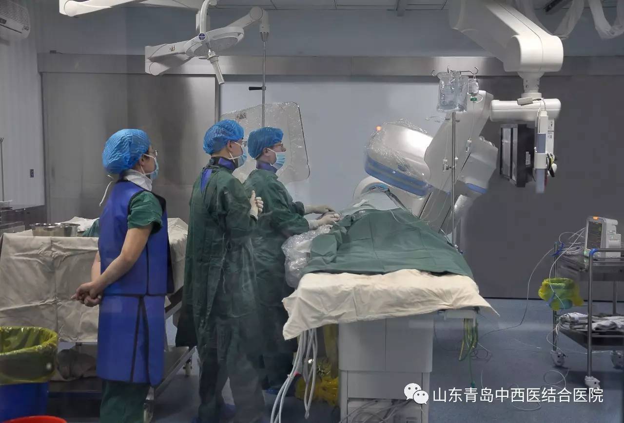 山东青岛中西医结合医院心内科医护人员为患者实施冠脉支架置入术