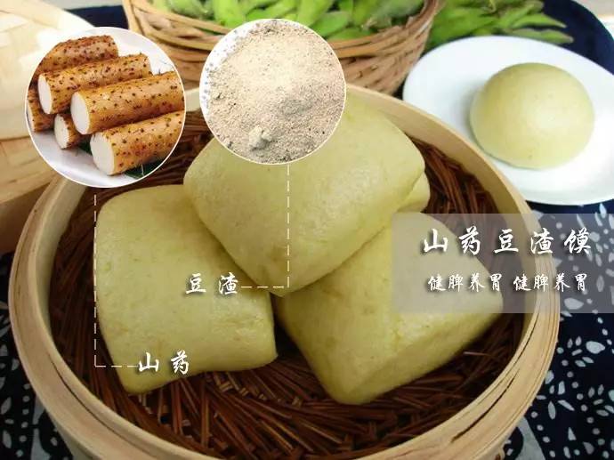 做法:鲜山药1根,去皮切成小块,把山药块和豆渣放入搅拌机中,打碎成泥,加入适量面粉发酵,发好后用混合面团蒸馒头。