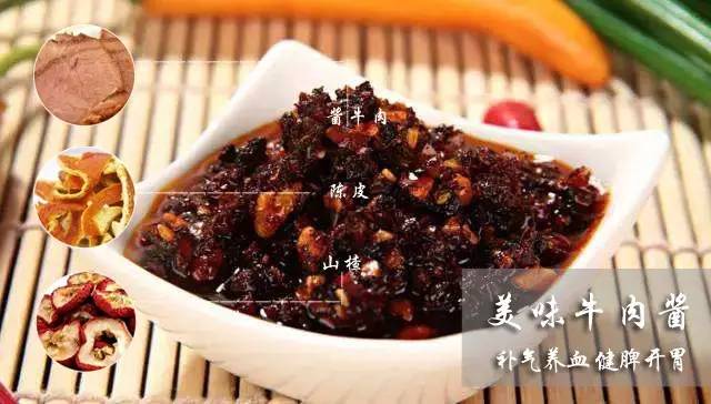 做法:酱牛肉、山楂、陈皮。以10:1:1比例混合搅拌打软。