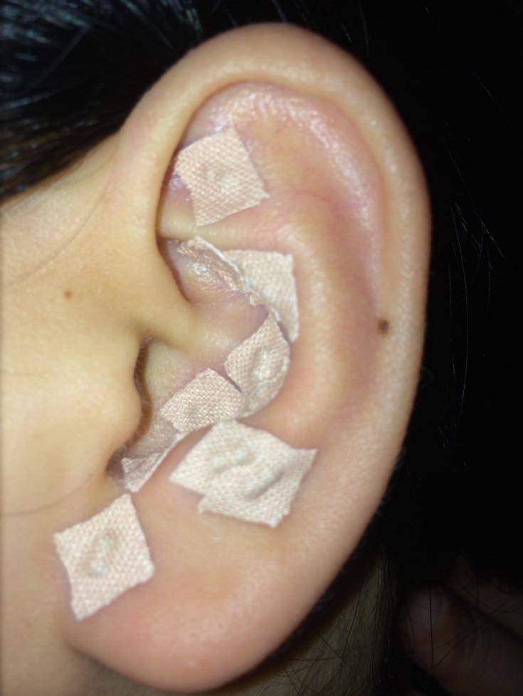 是用胶布将王不留行籽准确的粘贴于耳穴处,给予适度的按压,以达到治疗目的一种外治疗法,可以治疗失眠、高血压、胆石症、痛经、月经不调、假性近视等。