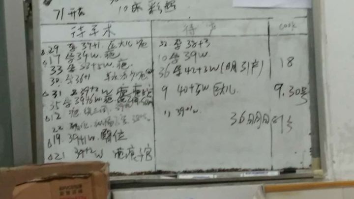 这块小白板,这都写些啥啊?大概只有产科的人能看懂吧,其实这只是这帮“娘子军”假期中一天的工作量,比平常多了三分之一还多。