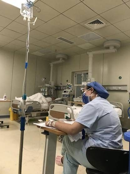 “哎,实在扛不住,趁着写记录的时间,我输个液。”急诊监护室的护士因为发烧,实在熬不住了,利用写护理记录的时间,让搭档帮忙看着患者,自己输液来降温。