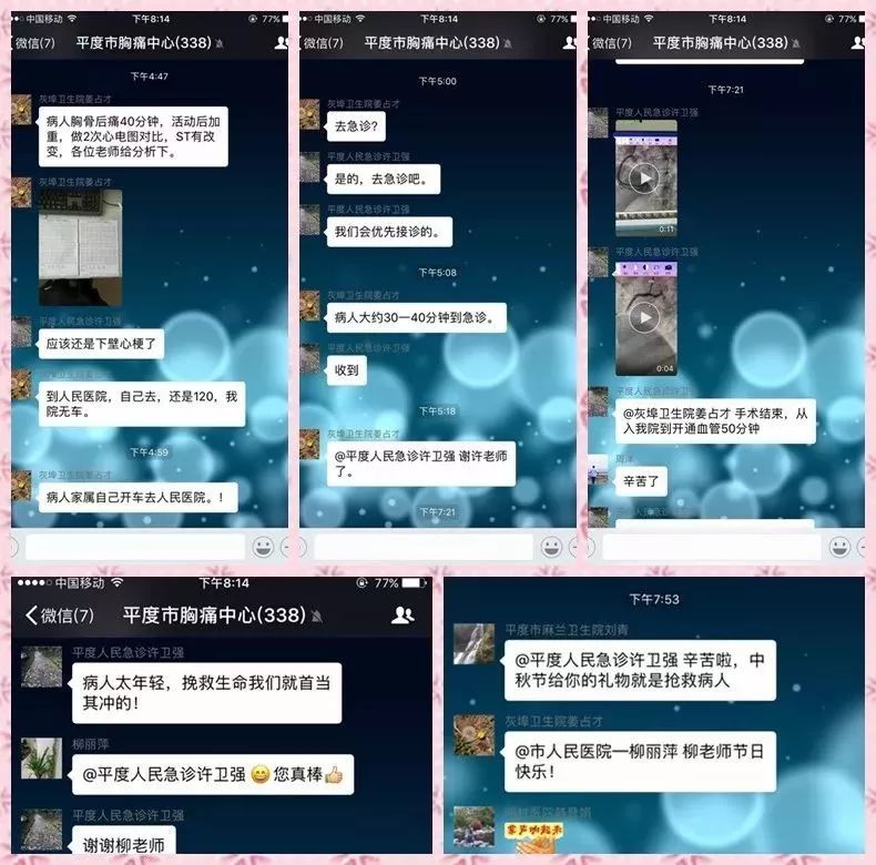 这是胸痛中心的医生们收到最好的“中秋礼物”38岁的女性,几天前运动后出现过暂短胸痛,胸闷。中秋节这天胸痛,憋气到乡镇医院就诊后。当地的医生根据病情立即通过胸痛中心群与我院医生进行沟通。我院急诊医生根据情况给予开通了绿色通道,从入院到开通血管仅用50分钟。