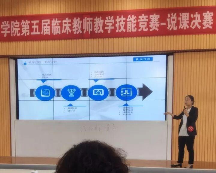 本次比赛由滨州医学院实践教学管理处承办,竞赛评委由外聘高校专家与校内专家共同担任,对理论课PPT课件、教案、讲稿、现场说课决赛及说课PPT制作内容分别进行了评审,尤其是现场说课决赛,从教师口语、教态、授课内容设计、重点难点把握、教学方法、多媒体使用、板书设计等多方面对选手进行了综合考核。现场高手云集,各有特色,比赛一直处于白热化状态。市人民医院两名选手材料准备充分,课堂教学目明确,教学思路清晰,教学过程设计合理,语言表达精练,教学方法独特新颖,展现了过硬的教学技能和风采。