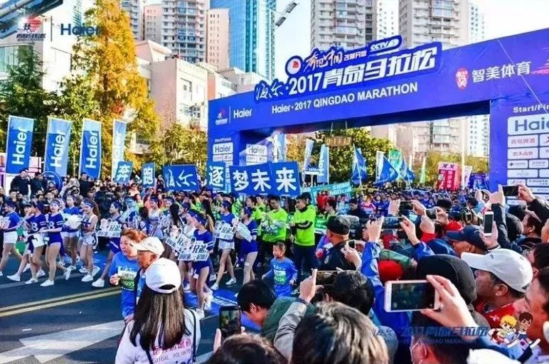 8:00 2017青岛马拉松正式鸣枪开跑。